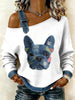 Patchwork do cão Vintage impressão Casual Off-ombro moletom feminino
