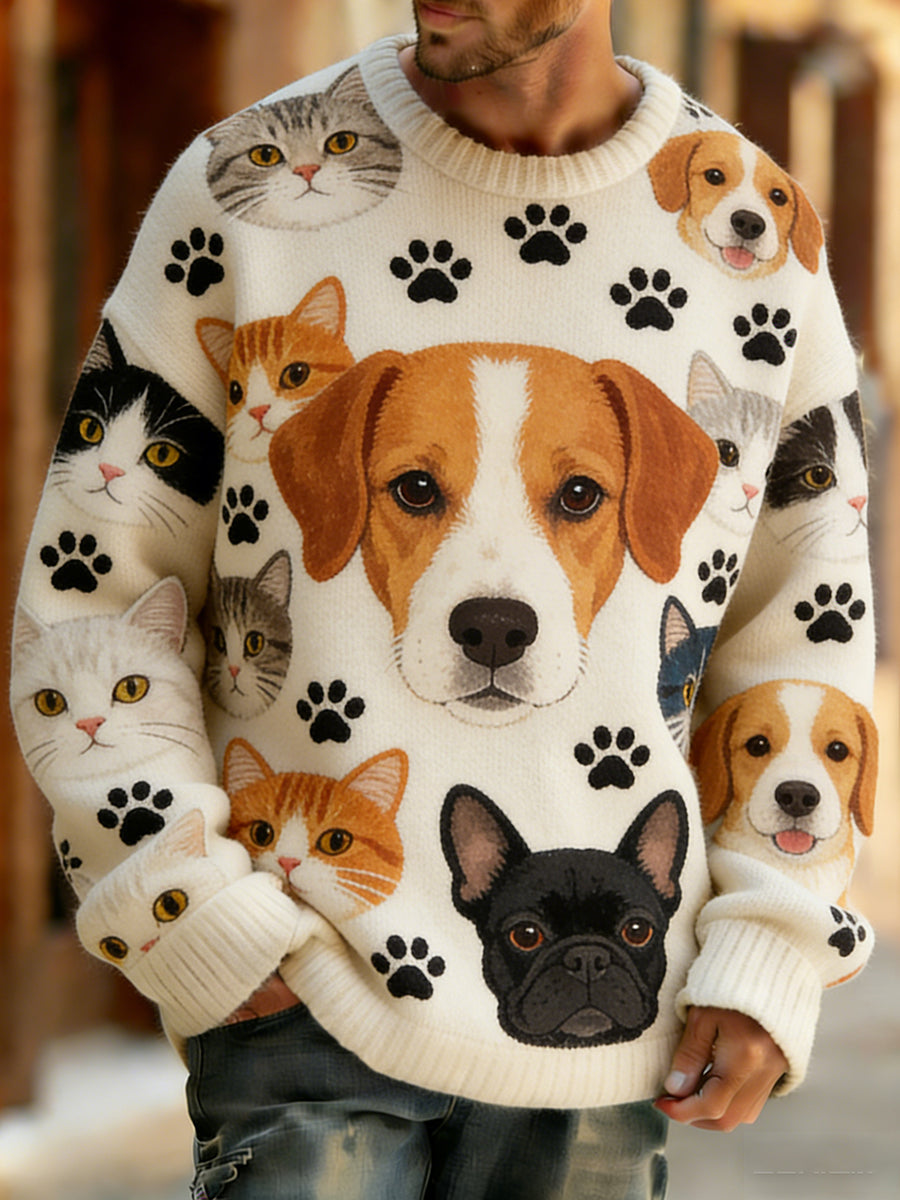 Retro abstrato Animal Art Print confortável Knit Top do homens