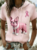 Retro Bulldog mama câncer consciência das mulheres Casual manga curta malha t-shirt