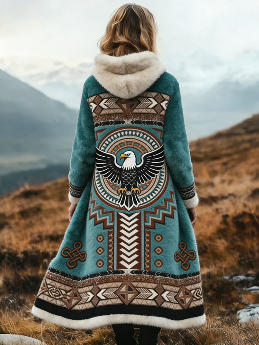 Vintage asteca padrão confortável casaco longo espessado do mulheres