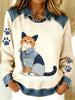 Vintage Denim Patchwork Top feminino com Animal Art Print, casual e confortável