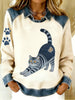 Vintage Denim Patchwork Top feminino com Animal Art Print, casual e confortável