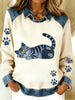 Vintage Denim Patchwork Top feminino com Animal Art Print, casual e confortável