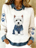 Vintage Denim Patchwork Top feminino com Animal Art Print, casual e confortável