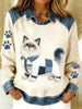 Vintage Denim Patchwork Top feminino com Animal Art Print, casual e confortável