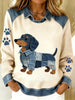 Vintage Denim Patchwork Top feminino com Animal Art Print, casual e confortável