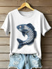 Vintage peixe Patchwork impressão Casual t-shirt do mulheres