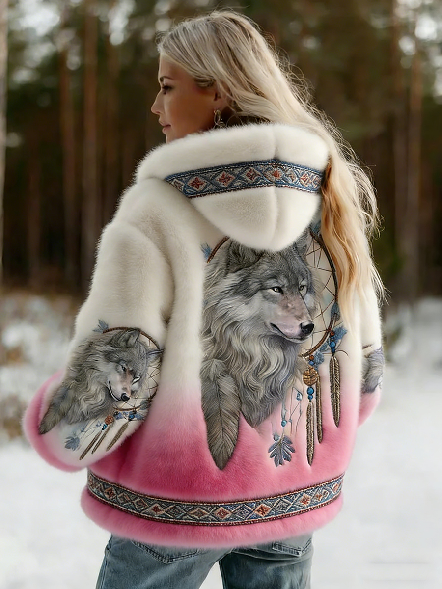 Vintage Viking Celtic nó lobo impressão gradiente flanela jaqueta do mulheres