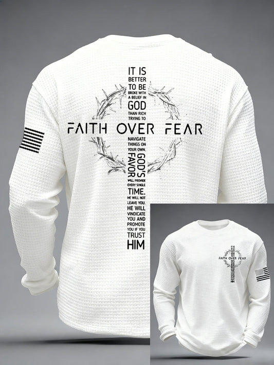 pretobrancoverde do exércitoazul marinhocinzavinho vermelho+ 2Fé Masculina Sobre O Medo Imprimir Casual Waffle Manga Longa Camiseta